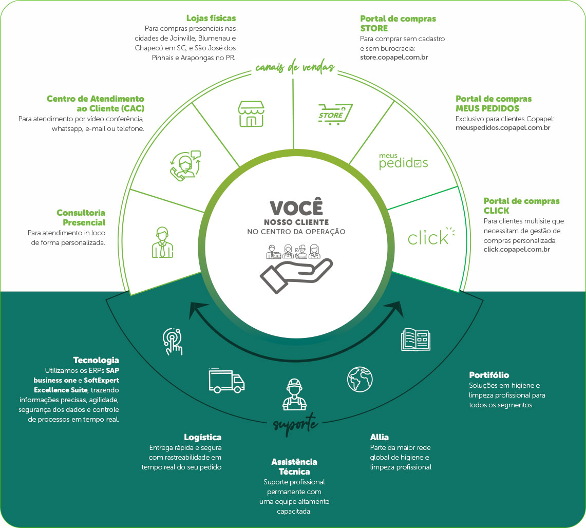 Desde sua fundação em 1976, a Copapel Distribuidora estabeleceu-se como pioneira e referência no fornecimento de soluções em higiene e limpeza profissional. Com mais de 47 anos de experiência, a empresa expandiu sua atuação e conta atualmente com oito unidades estrategicamente localizadas no sul do Brasil, oferecendo um portfólio diversificado de produtos e serviços para atender às demandas de seus clientes.