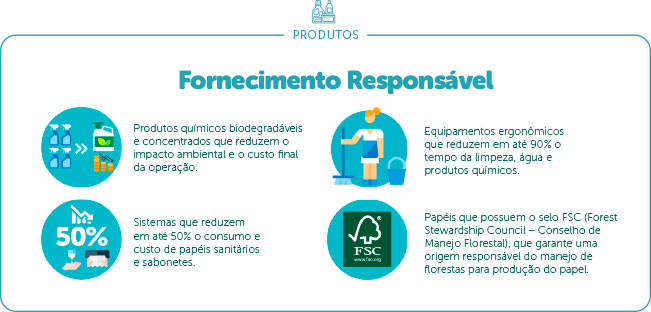 Nossa busca incessante por produtos de qualidade resulta em inúmeros benefícios tangíveis. Isso inclui a utilização de papéis provenientes de reflorestamento, a comercialização de equipamentos duráveis, econômicos e ergonomicamente amigáveis, o uso de produtos químicos totalmente regulamentados e a disponibilização de soluções que reduzem significativamente o consumo de água, energia e emissões de gases de efeito estufa.